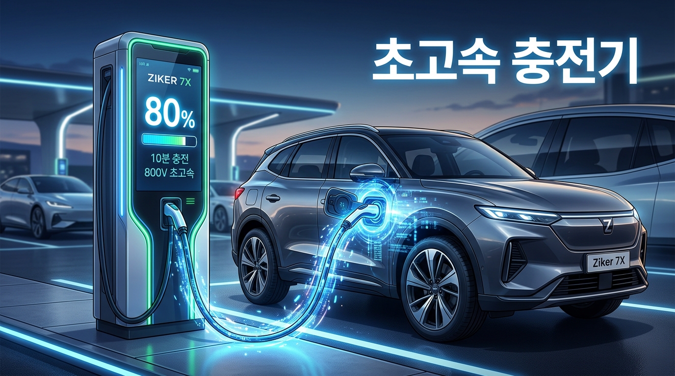 지커 7X의 10.5분 충전 속도를 온전히 체감하려면 국내에 설치된 350kW급 이상의 초고속 충전기(E-pit 등)를 이용해야 합니다. 차량 내비게이션과 연동되는 배터리 프리컨디셔닝 기능을 활성화하고 충전소에 도착하면 최적의 속도를 낼 수 있습니다.