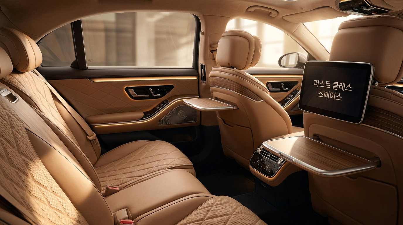 실내로 들어가면 럭셔리 브랜드의 노하우가 집약된 프리미엄 공간이 펼쳐집니다. 나파 풀그레인 가죽 시트가 적용되며, 전 좌석에 통풍, 열선 및 마사지 기능이 기본으로 제공됩니다.